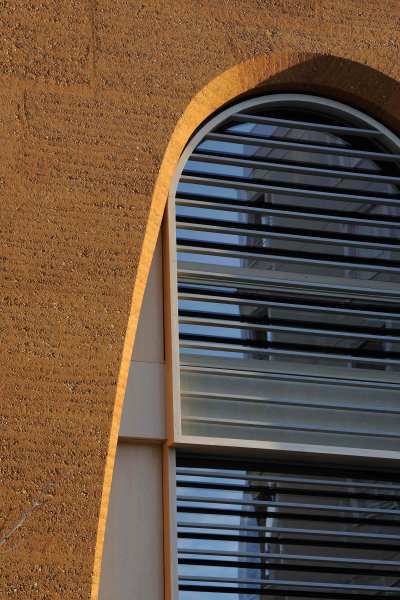 Fort de la volonté d’OGIC de remettre la terre crue au cœur d’un projet contemporain, l’architecture de l’Orangerie et ses 1000 m2 de bureaux répartis sur deux étages plus rez-de-chaussée constituaient de véritables défis techniques : avec ses grandes arches en pisé de plus de 9 mètres de hauteur, le bâtiment a nécessité toute l’expérience des équipes sur le terrain pour sa mise en œuvre. La technique consiste à comprimer le matériau terre crue entre des panneaux de coffrages pour la rendre la plus compacte possible et former des blocs. Au niveau de l’architecture, avec ses façades porteuses en pisé et son ossature intérieure en bois, ce bâtiment est en lui-même un tour de force artisanal, et une vraie démonstration de l’avenir du pisé en zone urbaine.