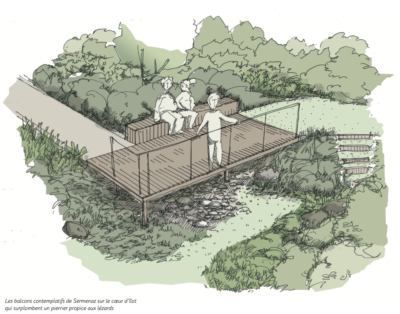 Grâce à la SAVA, le projet ne vient pas tant diminuer l’espace naturel par artificialisation du sol, mais plutôt prolonger le bois de Sermenaz en accueillant tout le vivant de la forêt.