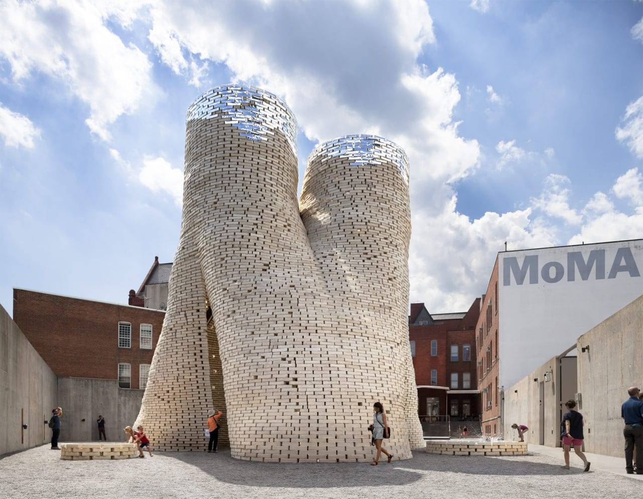 - À New York la Tour Hy-Fi est construite avec 10 000 briques organiques de champignons biodégradables… donc littéralement une tour vivante !