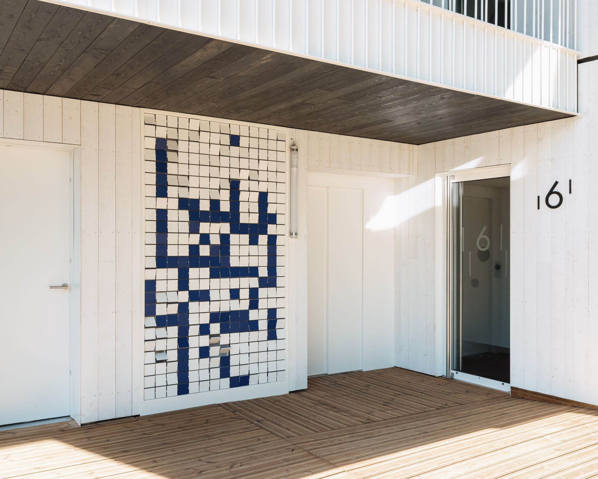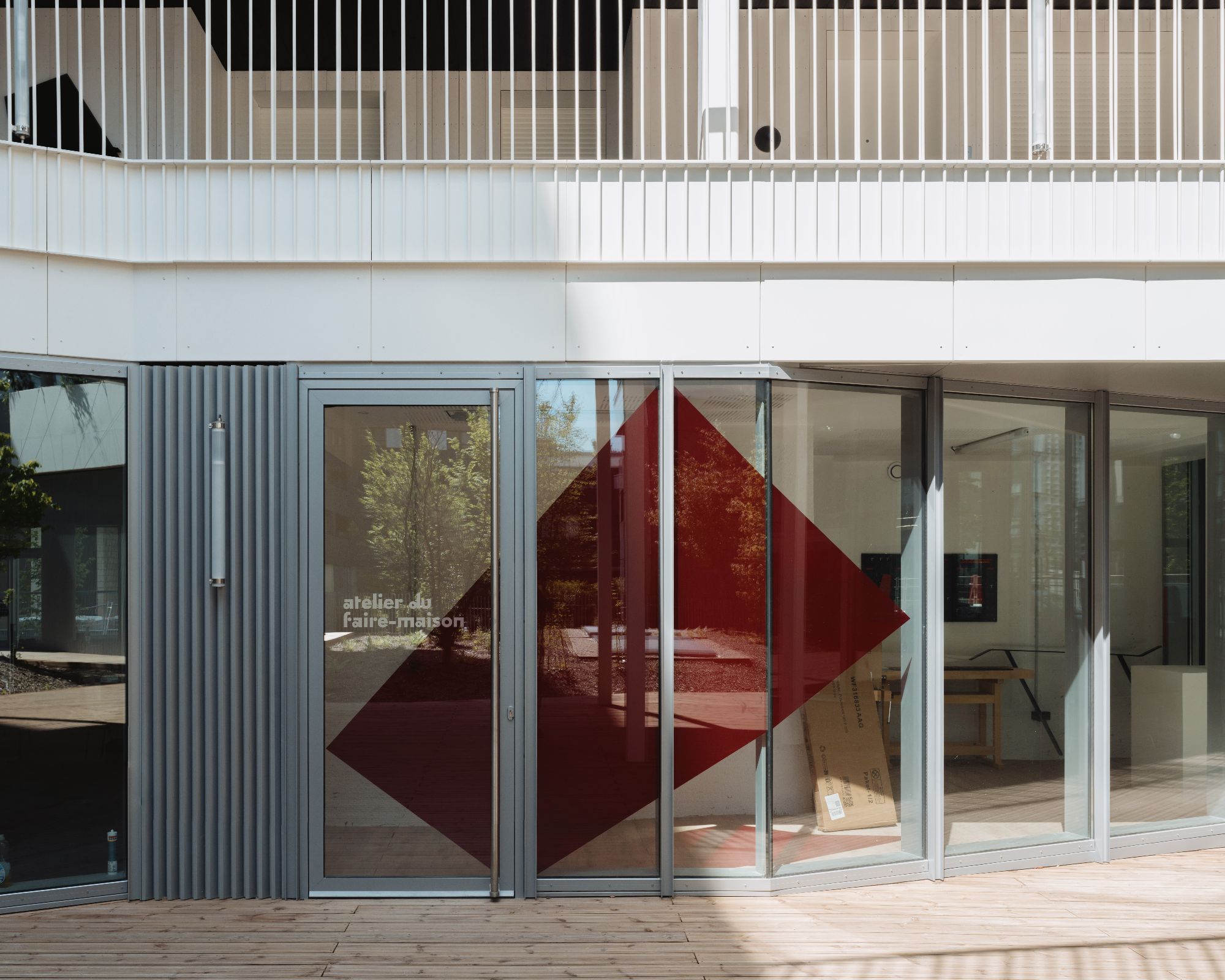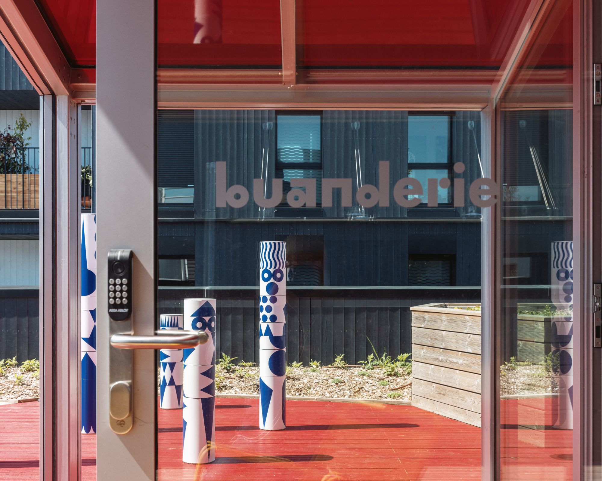 Pour aider les habitants à nouer des relations choisies avec leurs voisins, l’entrée de chaque appartement est personnalisable : une ardoise pour y écrire un mot ou un dessin, un rack à vélo, une table basse sur laquelle déposer livres et magazines dont on ne veut plus… tout est bon pour multiplier les points de contact. Et si cela ne suffit pas, un système a été conçu pour créer des prétextes à conversations : un mur de pixel qui permet de composer des messages pour ses voisins.