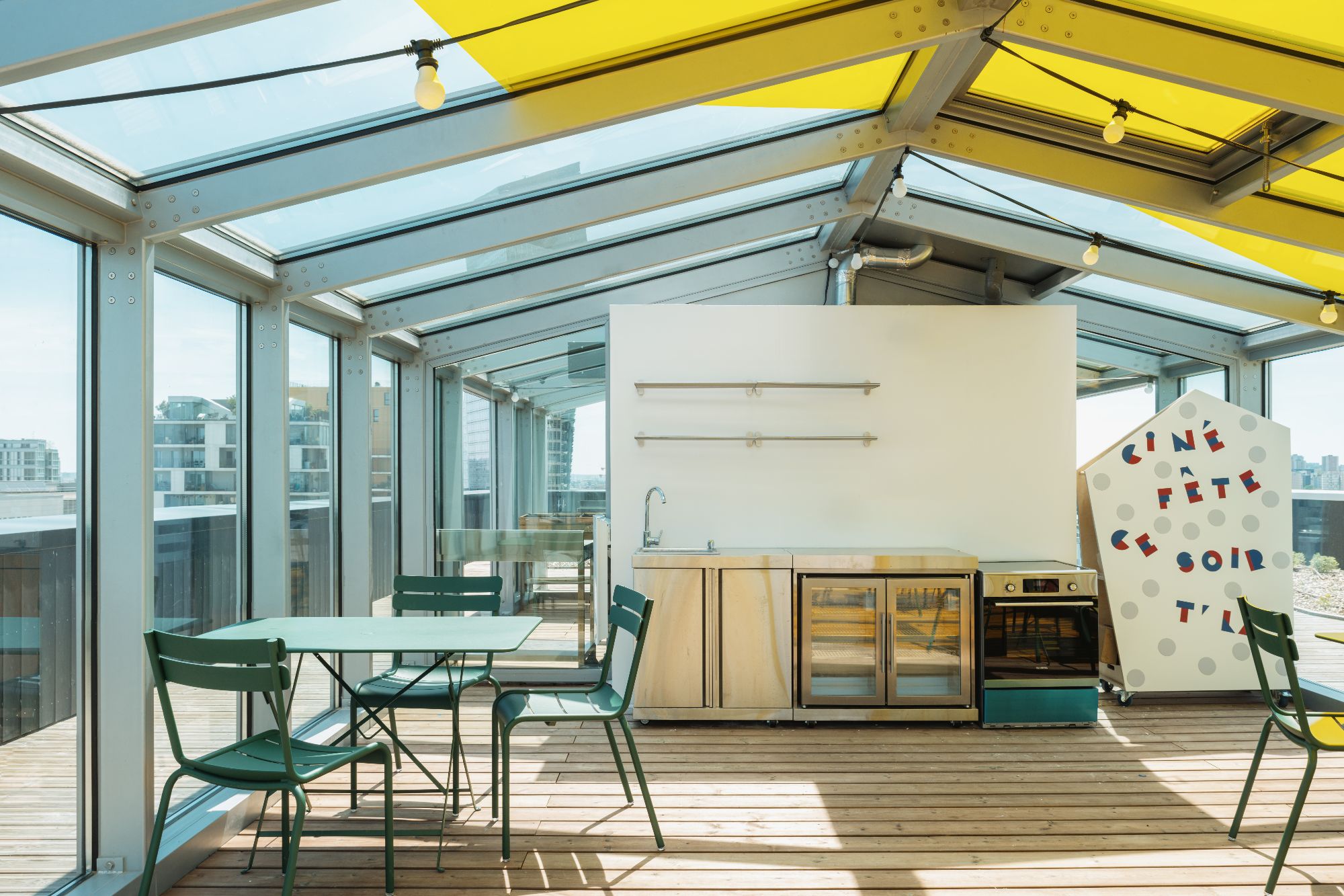 Salle de sport, atelier de bricolage, terrasses, buanderie ou encore bibliothèque partagée… de nombreux espaces sont à disposition dans l’immeuble. Les enfants ont même droit à une aire de jeux sur la terrasse, sur laquelle se trouve aussi une grande serre potagère, ainsi qu’un écran de cinéma ouvert à tous les habitants. Tout a été pensé pour créer une vraie communauté de vie.