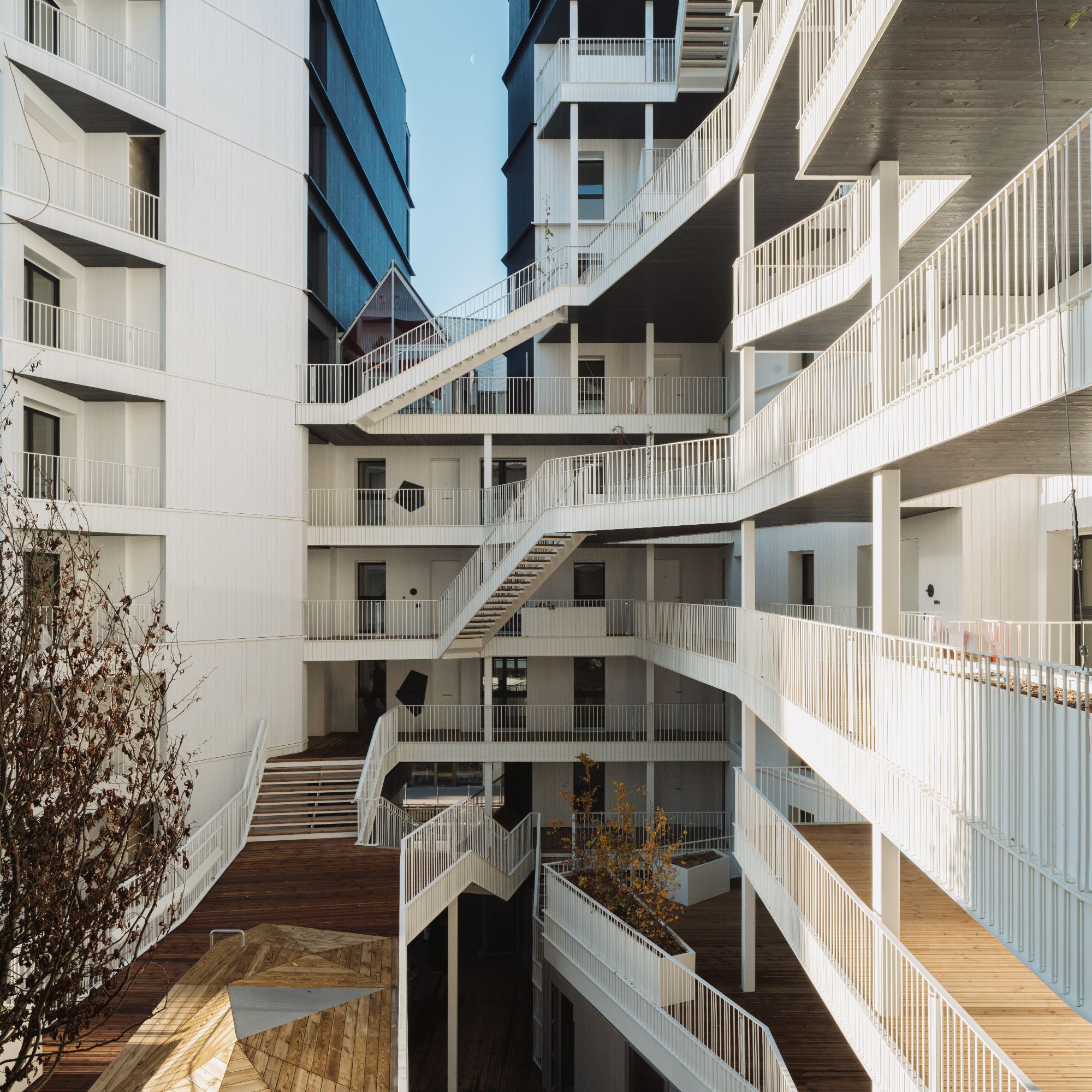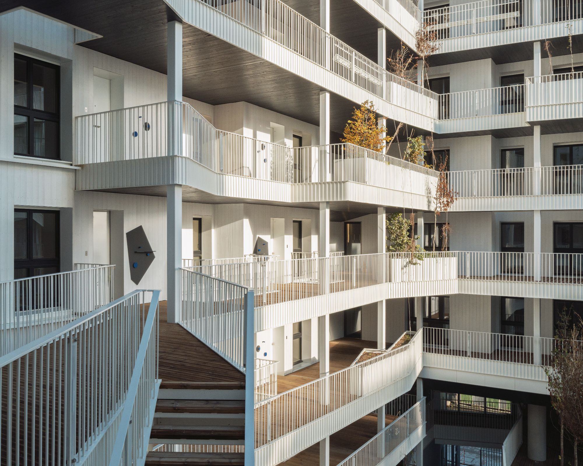 L’idée d’OGIC ? Conjuguer l’approche intuitive des modernistes à cet apport majeur de la psychologie comportementale, dans le but de créer un cadre de vie alliant performance énergétique et fonctionnalité. L’extérieur donne déjà le ton : une structure en bois et 1 500m² d’espaces extérieurs végétalisés. Pour répondre à l’évolution des besoins des habitants, le bâtiment a été pensé dans une logique d’architecture évolutive, avec par exemple une pièce baladeuse qui peut se vendre ou s’acquérir en fonction des besoins des habitants.