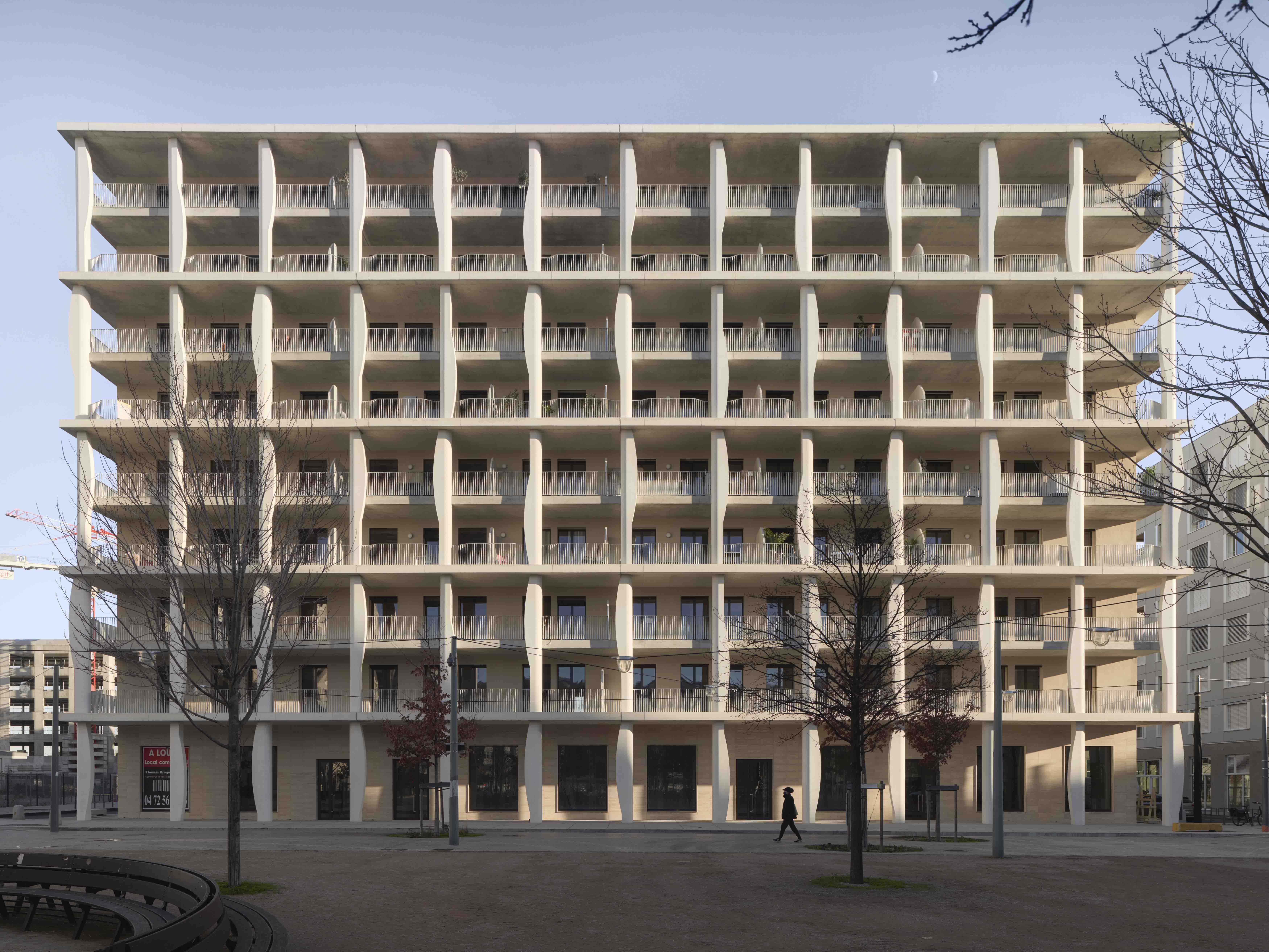 Dessiné par l’architecte Roger Diener, le bâtiment Arabesk est aussi emblématique qu’innovant : débarrassé d’un maximum d’éléments porteurs, il permet aux habitants de moduler à l’envie l’espace sur chaque plateau et d’accueillir indifféremment logement ou bureaux. Une architecture réversible qui répond ainsi à l’évolution des besoins et contribue à rendre la ville plus résiliente. Non content d’avoir un coup d’avance sur les usages de demain, ce bâtiment propose une vraie qualité architecturale, avec ses colonnes dansantes qui ondulent au fil de la façade.