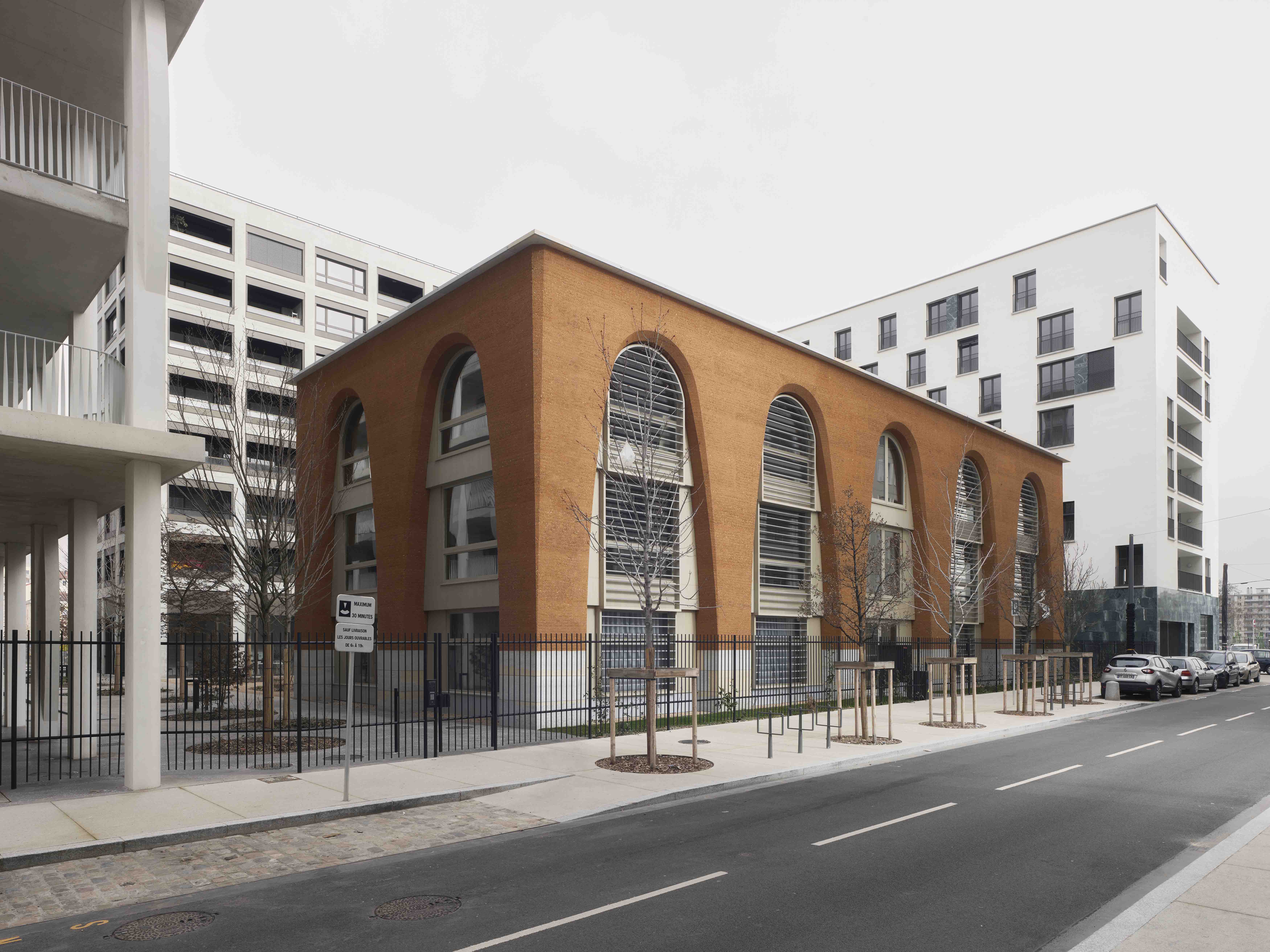 Singulier, cet immeuble de 2 étages se distingue des autres bâtiments par sa façade unique réalisée entièrement en terre crue, un écomatériau biothermique, bas-carbone et zéro-déchet. “Un vrai défi technique, souligne Anthony Manelli, responsable du programme Ydéal Confluence, puisqu’il a fallu que les architectes imaginent un bâtiment aux façades en terre crue porteuse associées à une structure bois”.