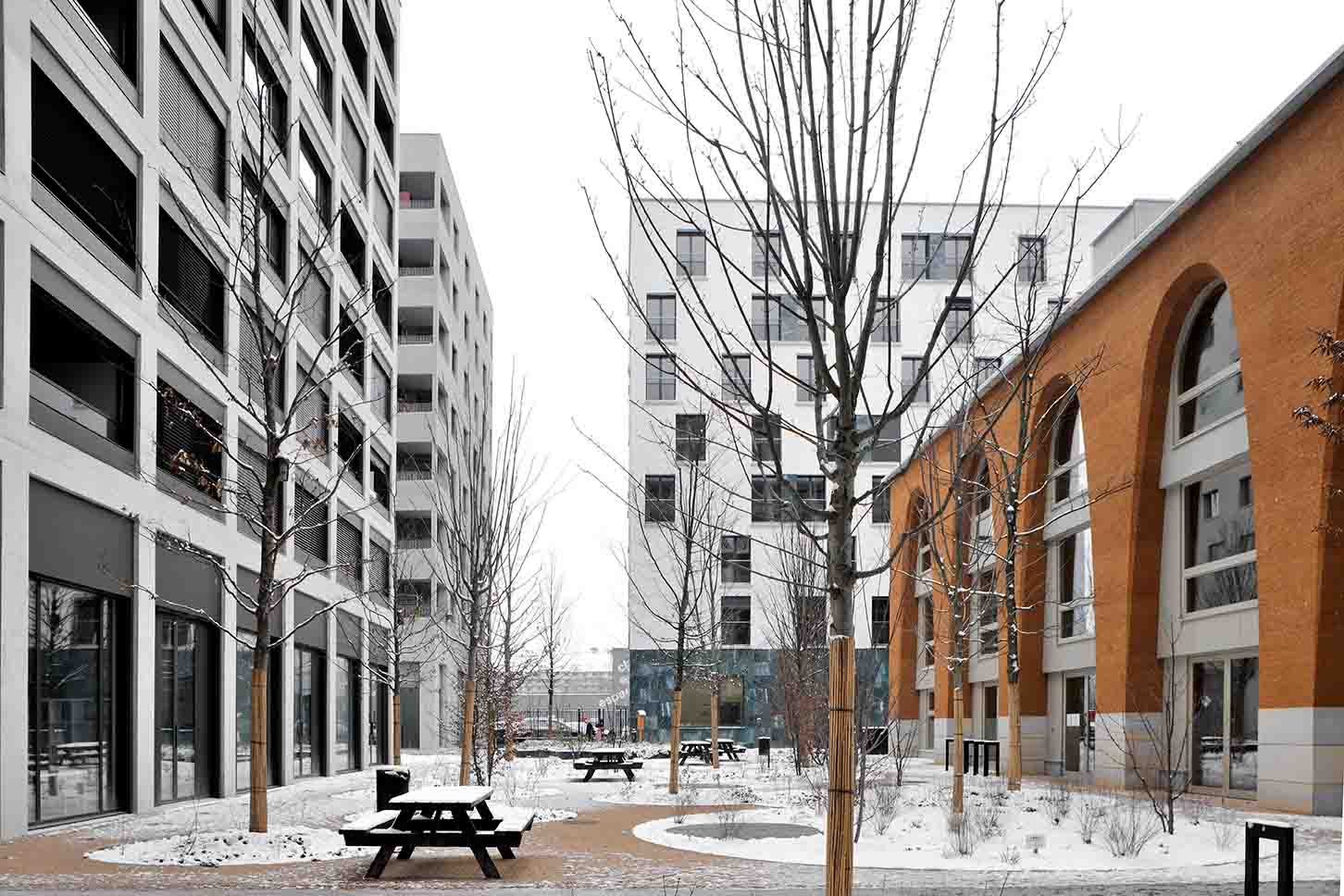 La cour intérieure se veut d’ailleurs être un véritable lieu de rencontre pour les habitants, afin qu’ils y inventent un art de vivre préservé. Une façon de rendre hommage, en ombre portée, à la vision d’un Le Corbusier ou de ses alter ego modernistes, pour qui l’architecture a des pouvoirs bénéfiques sur les comportements sociaux.