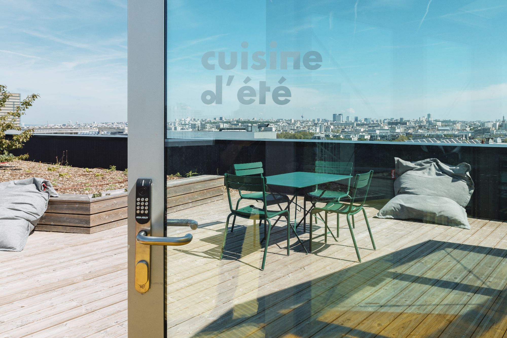 Salle de sport, atelier de bricolage, terrasses, buanderie ou encore bibliothèque partagée… de nombreux espaces sont à disposition dans l’immeuble. Les enfants ont même droit à une aire de jeux sur la terrasse, sur laquelle se trouve aussi une grande serre potagère, ainsi qu’un écran de cinéma ouvert à tous les habitants. Tout a été pensé pour créer une vraie communauté de vie.